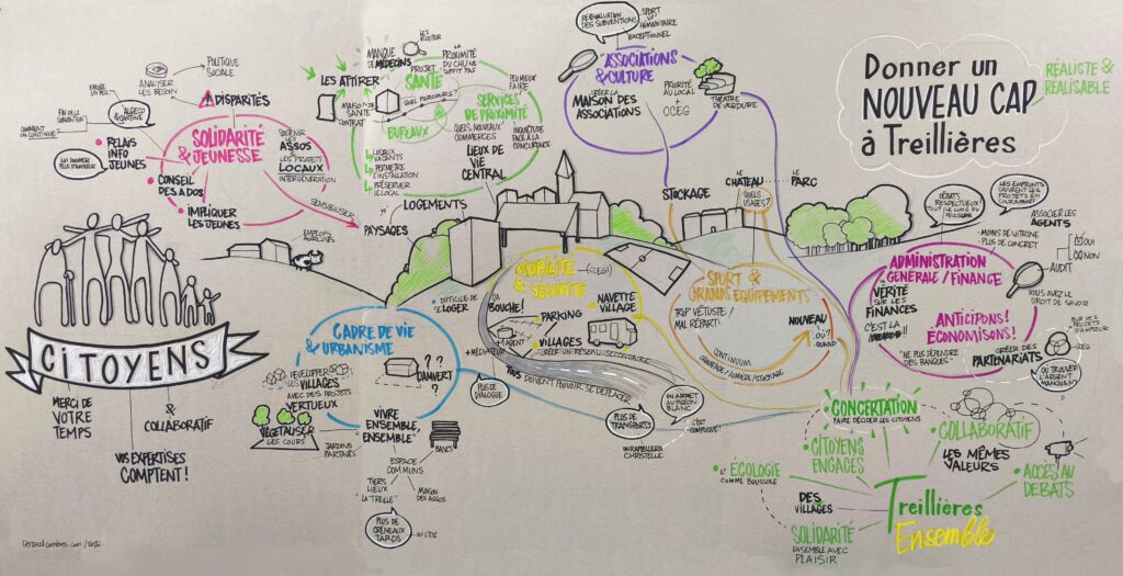 Construit à travers notre connaissance du territoire, nos valeurs, des ateliers « World cafe » et des échanges avec vous dans le centre-bourg et les villages, ce programme donne à voir notre vision du présent et de l’avenir de Treillières. Chaque sujet sera discuté, débattu, en toute transparence vis-à-vis des citoyens et professionnels de la commune.